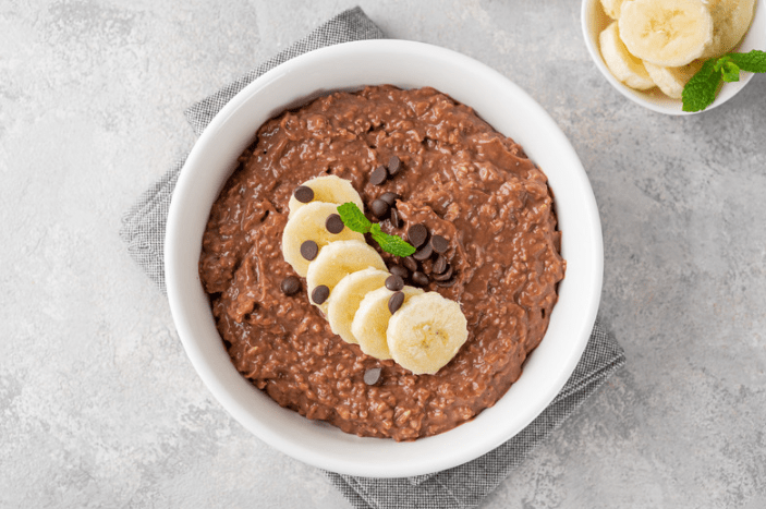 2️⃣ Une fois le porridge prêt, coupe la banane en rondelles et dépose-les sur le dessus.